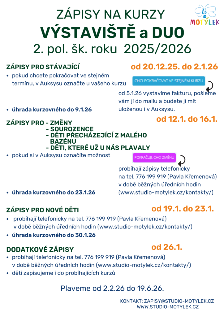 Na lekci se přihlašujete předem, omluvy jsou do 8 hodin dne, kdy se