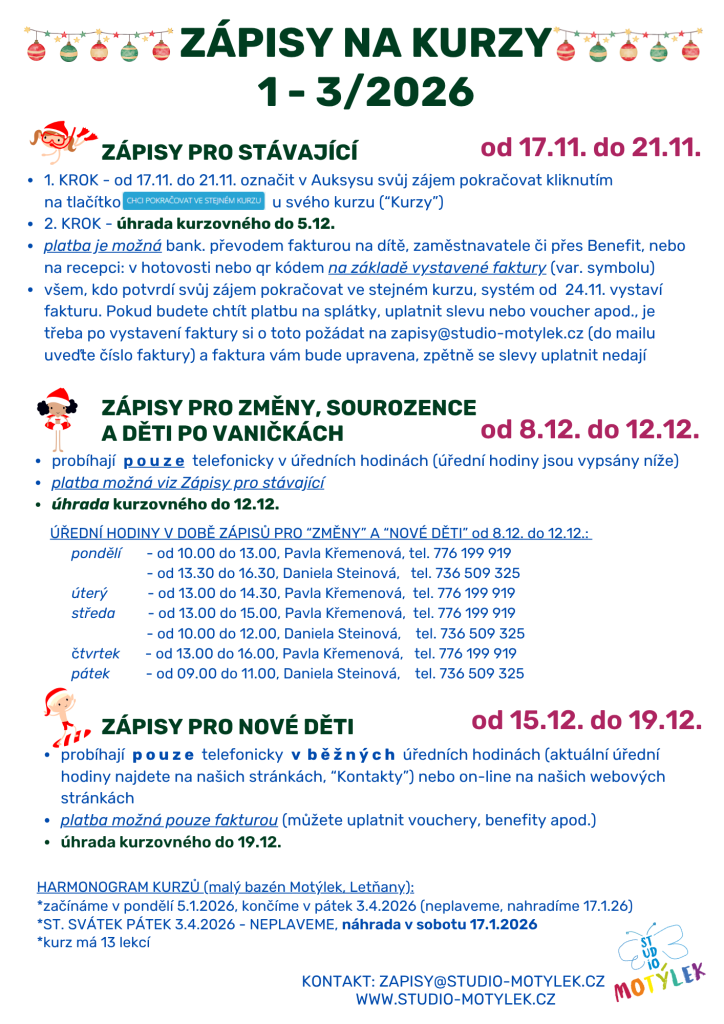 Na lekci se přihlašujete předem, omluvy jsou do 8 hodin dne, kdy se