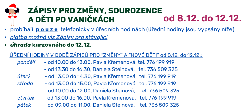 Úřední hodiny POUZE pro „zápisy pro změny“ v týdnu od 8.12.25